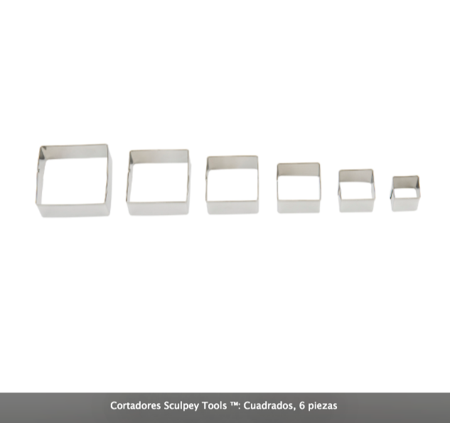 Juego de 6 cortadores acero inoxidable Sculpey forma CUADRADO 6u