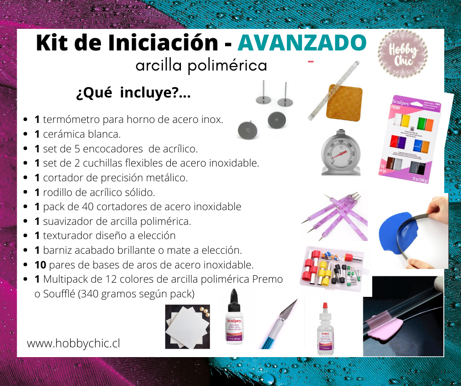 • El PACK  AVANZADO  tal como su nombre lo indica tiene los elementos necesarios para poder empezar a trabajar la arcilla polimérica con tranquilidad y seguridad, agregándole un bello plus de posibilidades!!!, algo adicional y especial a tus trabajos.