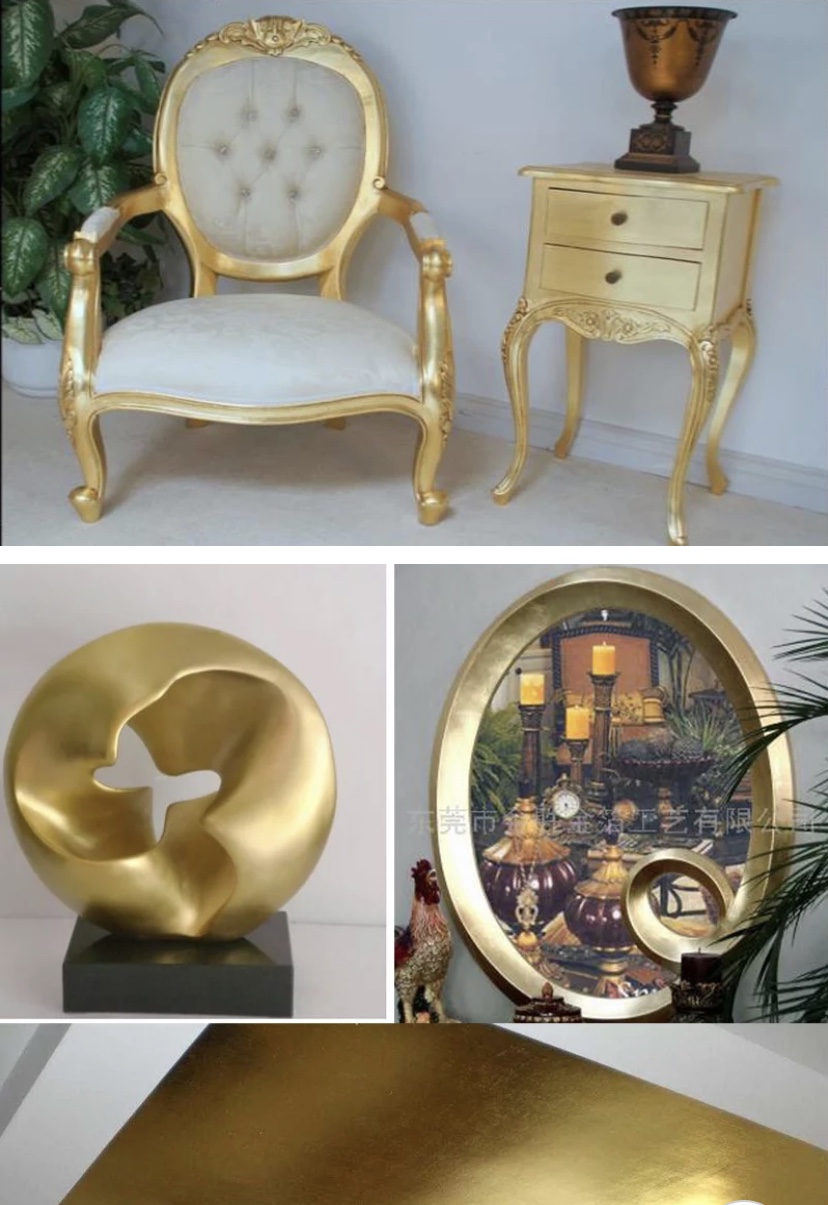 Lámina muy fina color oro de imitación italiano, usado tradicionalmente para decoración por medio del dorado sobre la superficie de diferentes objetos artísticos, por ejemplo en esculturas, retablos, orfebrería, mobiliario y superficies arquitectónicas, tanto en exteriores como en interiores.